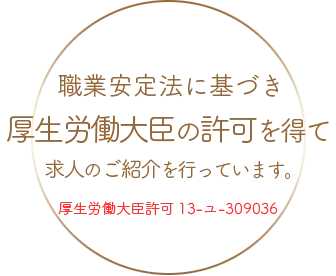 有料職業紹介事業 厚生労働大臣許可 13-ユ-309036